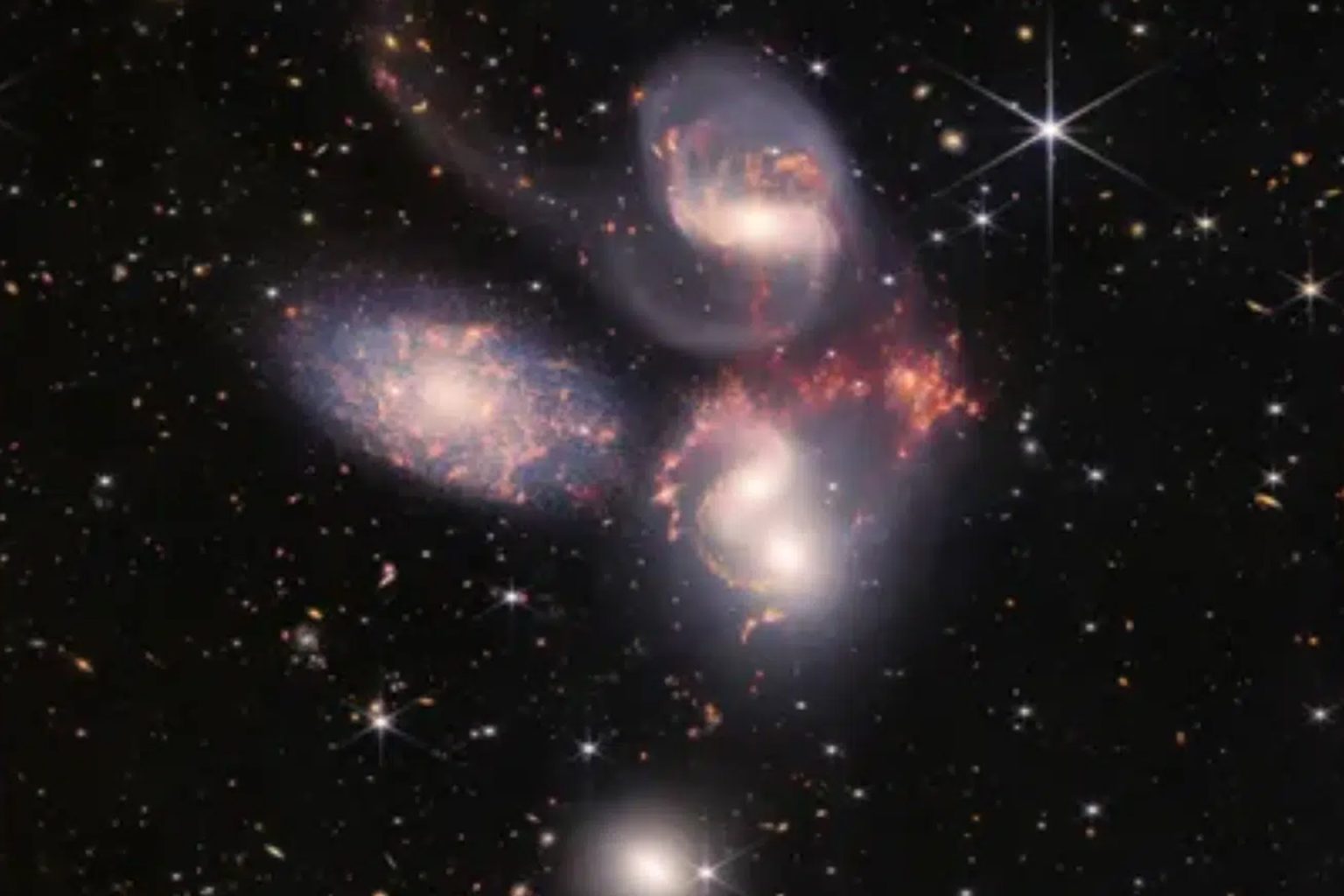 اكتشف فريق دولي باستخدام تلسكوب “جيمس ويب” الفضائي نظامًا فريدًا من خمس مجرات تندمج في مرحلة مبكرة جدًا من عمر الكون، بعد نحو 800 مليون سنة فقط من الانفجار العظيم. نشرت الدراسة في مجلة “نيتشر أسترونومي”، وكشفت عن مستوى غير متوقع من التعقيد الكوني، مما يشير إلى أن الهياكل الكبيرة والديناميكية تشكلت أسرع مما كان يعتقد سابقًا. تكمن المعلومة الجديدة في العدد الكبير من المجرات المتفاعلة في وقت مبكر، بينما المعلومة المثيرة أن اندماج خمس مجرات بهذه الكثافة لم يكن متوقعًا في هذا العصر، إذ يعتقد أن معظم المجرات كانت أصغر وأبسط ومعزولة.