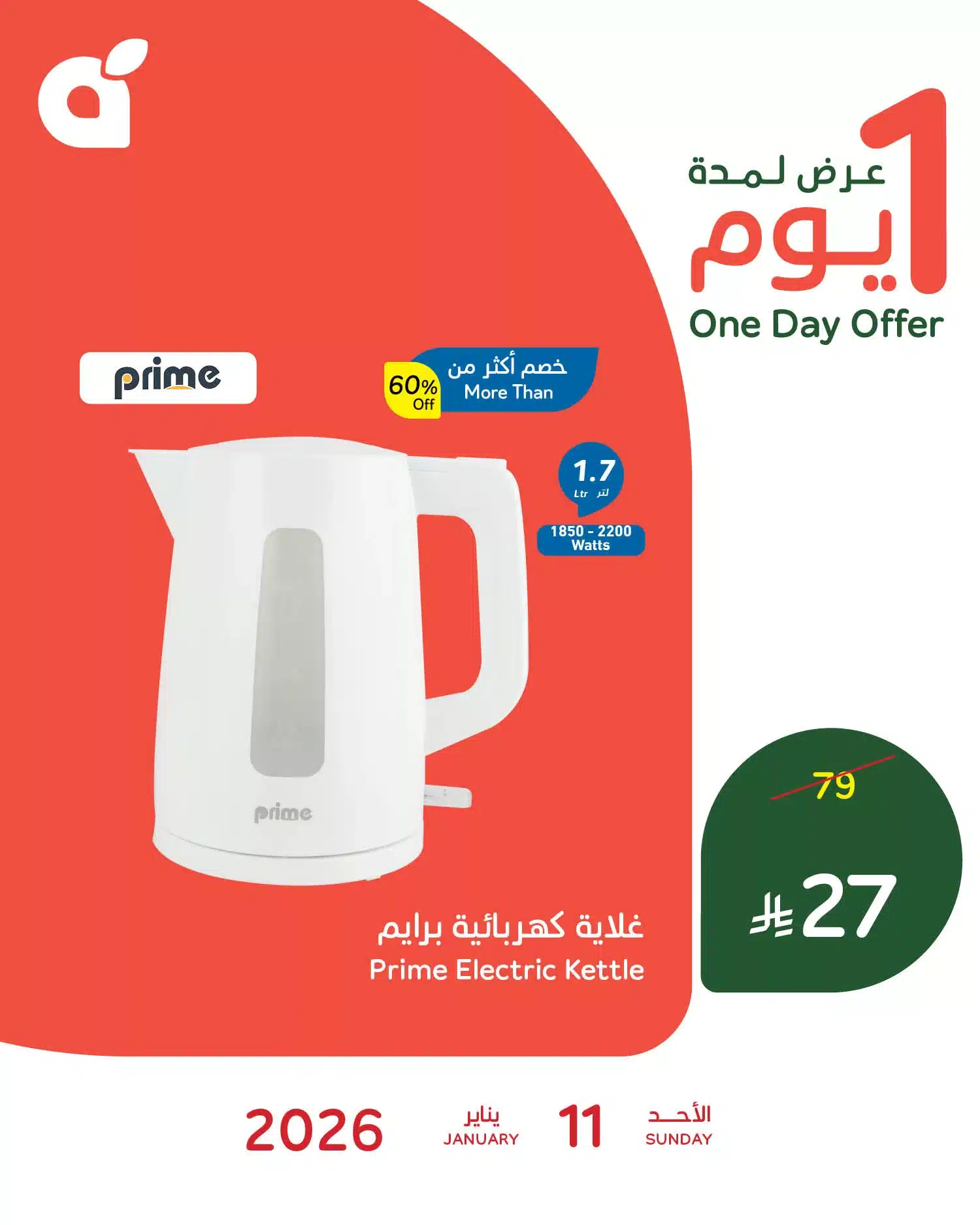 بنقدم ليكم احدث عروض بنده الاحد 11 يناير 2026 – 22 رجب 1447هـ و تحتوي علي افضل الاجهزة المنزلية اليوم و هي غلاية برايم الاضافة الي خصومات باكثر من 60% في عرض حصري متاح اليوم فقط و باسعار تنافسية ابقوا معنا ليصلكم كل جديد