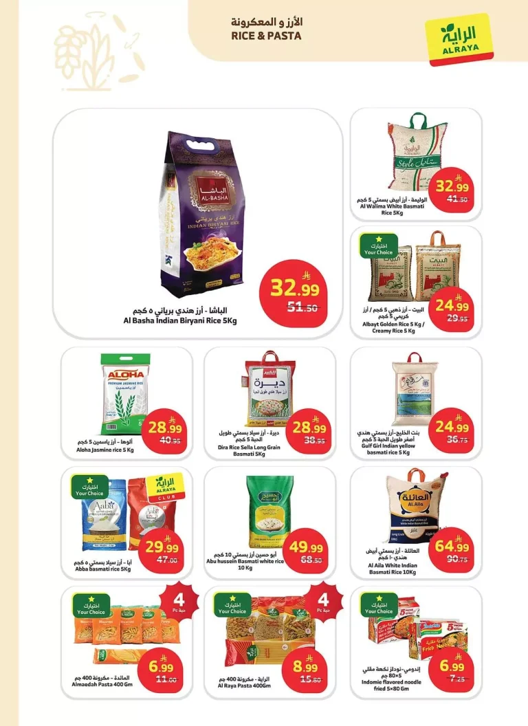 تستمر عروض أسواق الراية جدة الأسبوعية بتقديم تشكيلة واسعة من المنتجات الاستهلاكية الضرورية. تشمل هذه المنتجات حليب نيدو المجفف، زيت زيتون الباشا، وسمن المراعي. بالإضافة إلى ذلك، يتوفر منتجات مثل شطة بيدر الحارة، وخل رنا الأبيض، ومايونيز فيكتوريا، وعصير سن توب، وشراب شعير بربيكان. كما لم تغفل العروض عن توفير مستلزمات أساسية كالسكر الناعم من الأسرة، وشاي ليبتون، وقشطة بوك، وجبنة موزاريلا مبشورة.