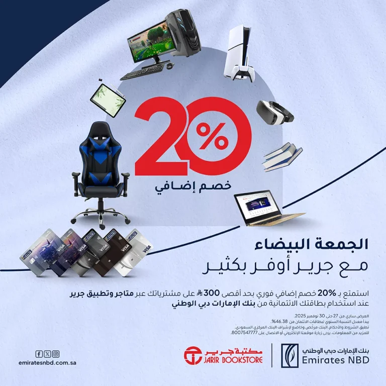 EmiratesNBD KSA 1993979551106375852 01 - خصم 20% من جرير عند استخدام بطاقات بنك الامارات دبي الوطنية الائتمانية للجمعة البيضاء