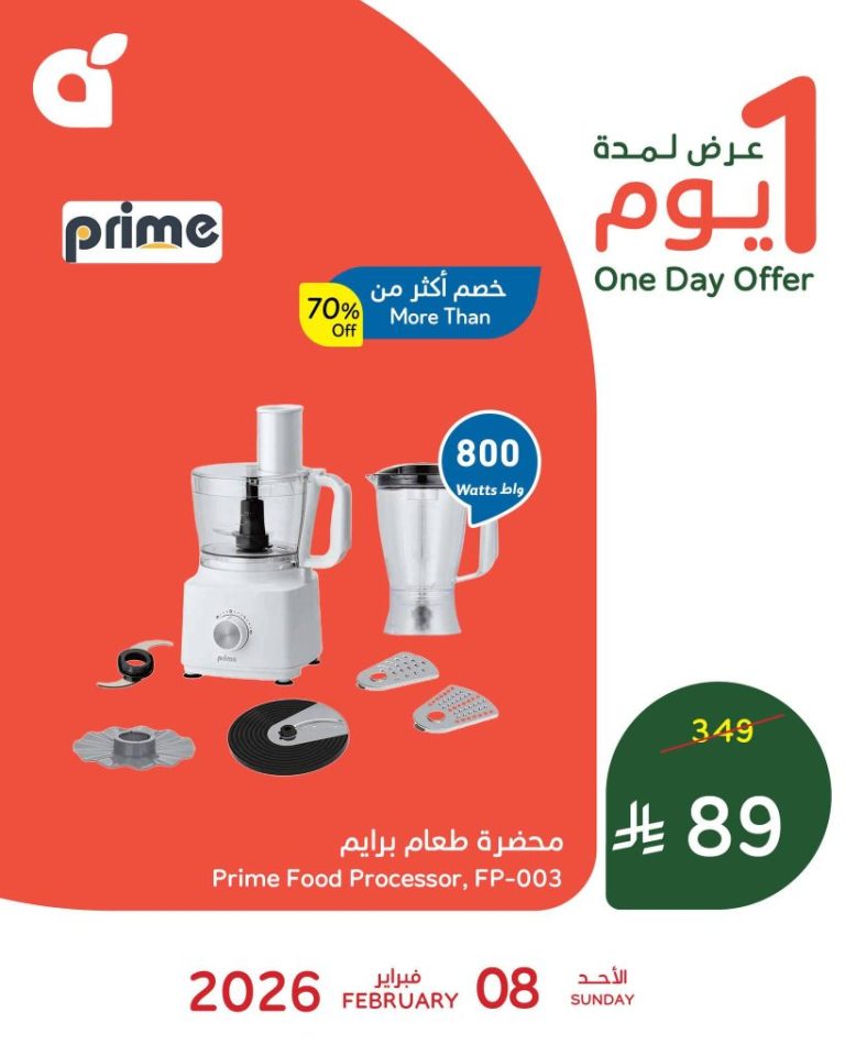 عروض بنده الاحد 20-8-1447 الموافق 8 فبراير 2026 و تحتوي علي افضل و اقوي الاجهزة الخاصة بتحضير الطعام رمضان الان سار اسهل مع محضرة الطعام برايم و تتمتع بخصم باكثر من 70% في عرض حصري متاح اليوم فقط علي موقعكم عروض توداي ابقوا معنا ليصلكم كل جديد