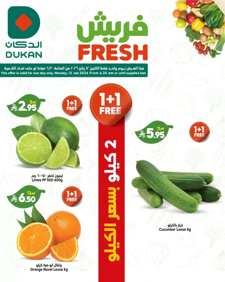 عروض الدكان جدة الاثنين 23-7-1447هـ الموافق 12 يناير 2026 بتقدم ليكم تشكيلة من المنتجات الاستهلاكية و الغذائية منها الارز و السكر و الزيوت و الاجبان و بتقدم ايضا اشهي اصناف اللحوم الطازجة و الفواكه و المجمدات و غيرها من المنتجات باقل الاسعار تابعونا ليصلكم كل جديد عن عروض السعودية