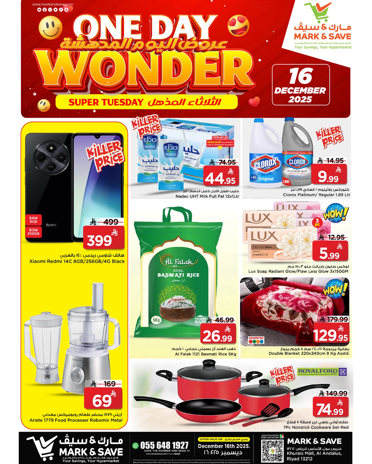 اذا كنت من سكان الرياض فانت على موقعد مع العروض المميزة والتى من بينها عرض مارك اند سيف الرياض والذى يقدم واحد من العروض الخاصة ليوم الثلاثاء ١٦ ديسمبر ٢٠٢٥ تحت عنواتن الثلاثاء المذهل يوم واحد رائع ومميز ويحتوى عرض مارك اند سيف على العديد من المنتجات من بينها