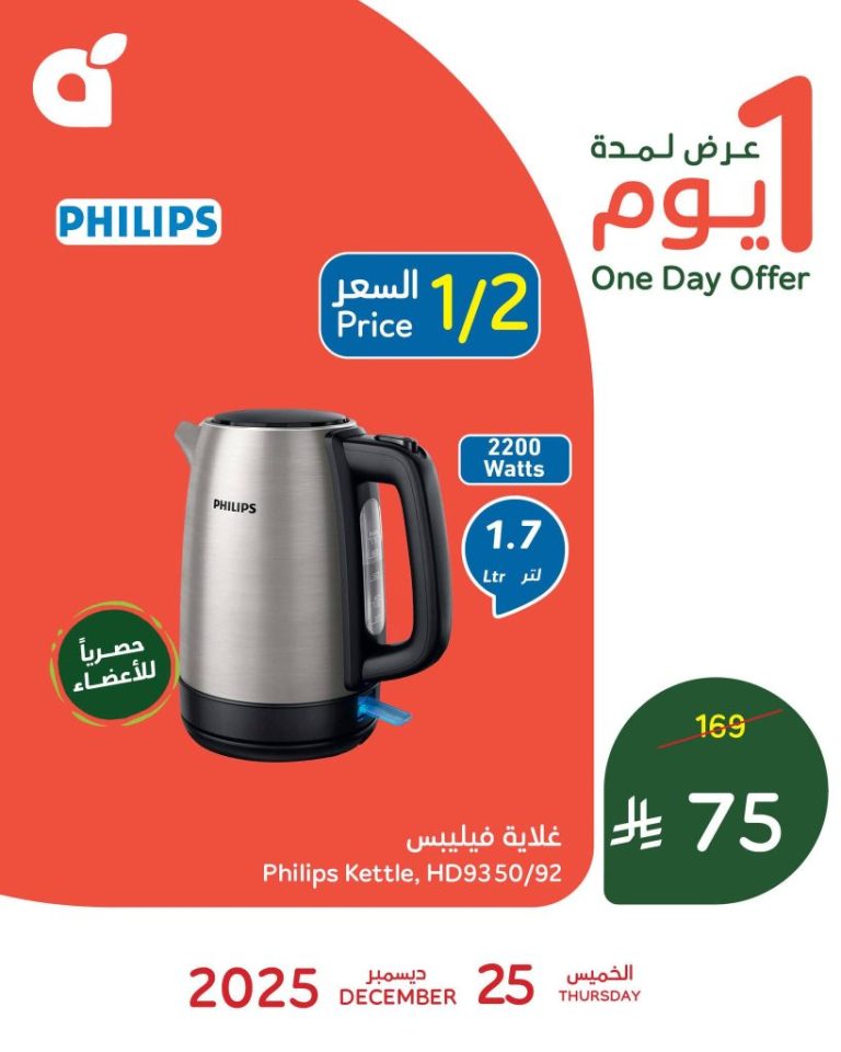 عروض بنده اليوم الخميس 5 رجب 1447هـ و تحتوي علي افضل اجهزة المنزل و هي غلاية فيليبس سعة 1.7 لتر و باقل الاسعار المناسبة للجميع في عرض حصري للاعضاء متاح اليوم فقط كما يوفر موقعنا عروض توداي مجلة بنده الاسبوعية و تشمل منتجات غذائية و الكترونية باسعار رائعة مناسبة للجميع .
