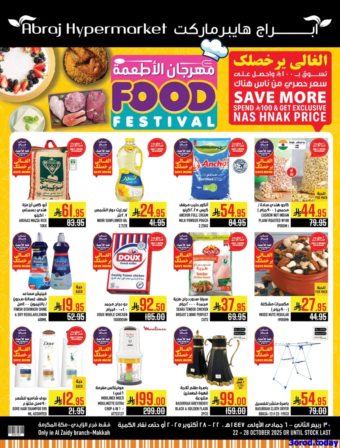 عروض أبراج هايبر ماركت الأسبوعية الأربعاء 30 ربيع الآخر 1447هـ تحتوي على تخفيضات خاصة بالأجهزة المنزلية مثل أفران الطبخ الذكية وأجهزة تحضير القهوة وأجهزة العصائر والخلاطات المتعددة و تشمل المخبوزات الطازجة والعصائر الطبيعية والفواكه والخضروات والعسل الطبيعي والقهوة والشاي والمشروبات والمعلبات والصلصات الجاهزة