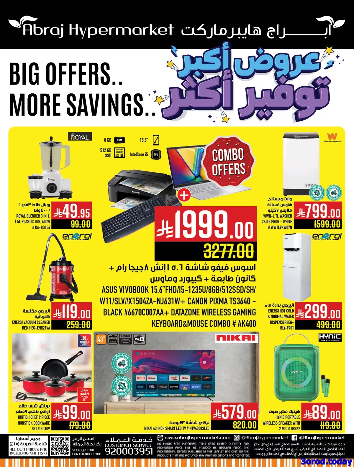 عروض أبراج هايبر ماركت حتى الثلاثاء 7 أكتوبر 2025 تتميز بمجموعة ضخمة من الأجهزة المنزلية مثل الثلاجات والغسالات وأجهزة التبريد والمكيفات من علامات تجارية مشهورة وتتوفر أيضا الشاشات الذكية بتقنيات حديثة وتشكيلة متنوعة من معدات المطبخ مثل الغلايات وأجهزة تحضير الطعام والمكنسة الكهربائية و باقل الاسعار المناسبة للجميع