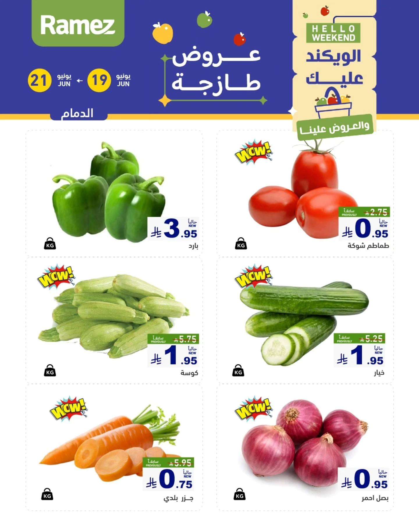 عروض أسواق رامز السعودية الخميس 19 يونيو 2025 تقدم مجموعة متنوعة من المنتجات الطازجة التي تلبي احتياجات الأسرة السعودية من الخضار والفواكه بجودة عالية حيث تشمل العروض طماطم شوقة وكوسة وخيار وباذنجان أسود بالإضافة إلى الجزر البلدي والملفوف الأبيض وكلها طازجة ومختارة بعناية