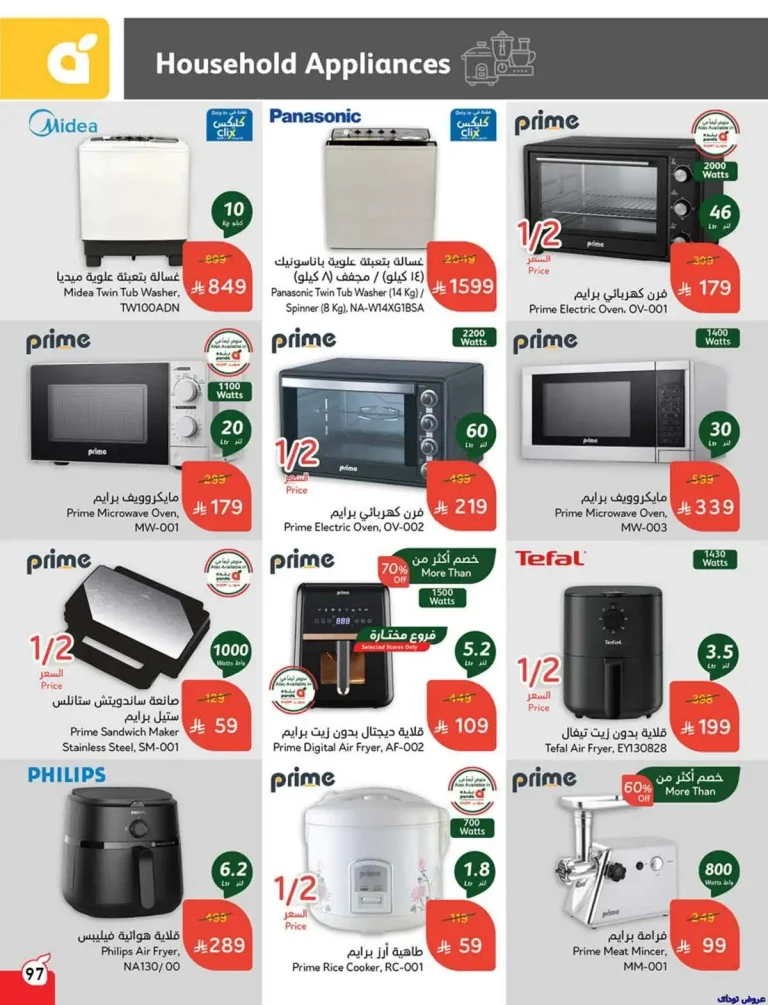 تشمل أيضا عروض بنده تخفيضات هائلة على أجهزة التكييف والثلاجات والغسالات من علامات تجارية موثوقة مثل هاير وميديا وباناسونيك وكلاس برو حيث تنوّعت المنتجات بين مكيفات شباك وسبلت وفريزرات أفقية وثلاجات بابين وغسالات حوضين مما يلبّي احتياجات كل منزل سعودي