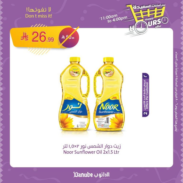 عروض الدانوب الساعات السعيدة الجمعة 6 فبراير 2026 عروض قوية على منتجات مختارة ساعات السعادة في الدانوب من الساعة 11:00 صباحاً إلى 4:00 مساء استفيدوا من اقوى العروض المميزه بأقوى الاسعار
