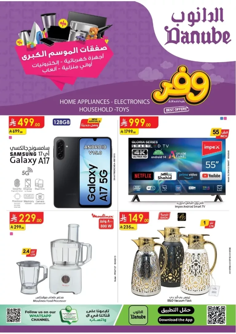 عروض الدانوب السعودية السبت 11-10-2025 تأتيكم بتشكيلة واسعة من الأجهزة المنزلية والكهربائية مثل مكائن القهوة والعصارات والمحامص والمكاوي والمكانس بالإضافة لمنتجات الطهي والتحضير مثل معالجات الطعام والخلاطات والمفرمات وتجدون أيضا أجهزة تحضير القهوة وأواني الحفظ والمكواة البخارية مع الخلاطات عالية الجودة