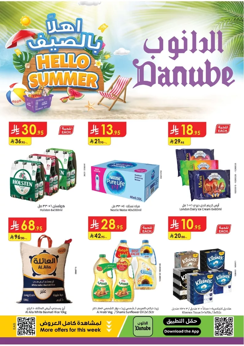 عروض الدانوب المنطقة الشرقية الأسبوعية الخميس 19 يونيو 2025 تحتوي على عروض على اللبن بنكهات الموز والفانيليا والمعلبات مثل الزيتون الأسود والذرة بالفلفل الحار والطماطم المعلبة والعصائر بنكهات التوت والمانجو والمياه بنكهات الحمضيات والمربى بنكهات الكرز والمشمش والأجبان الطرية بنكهات الزعتر