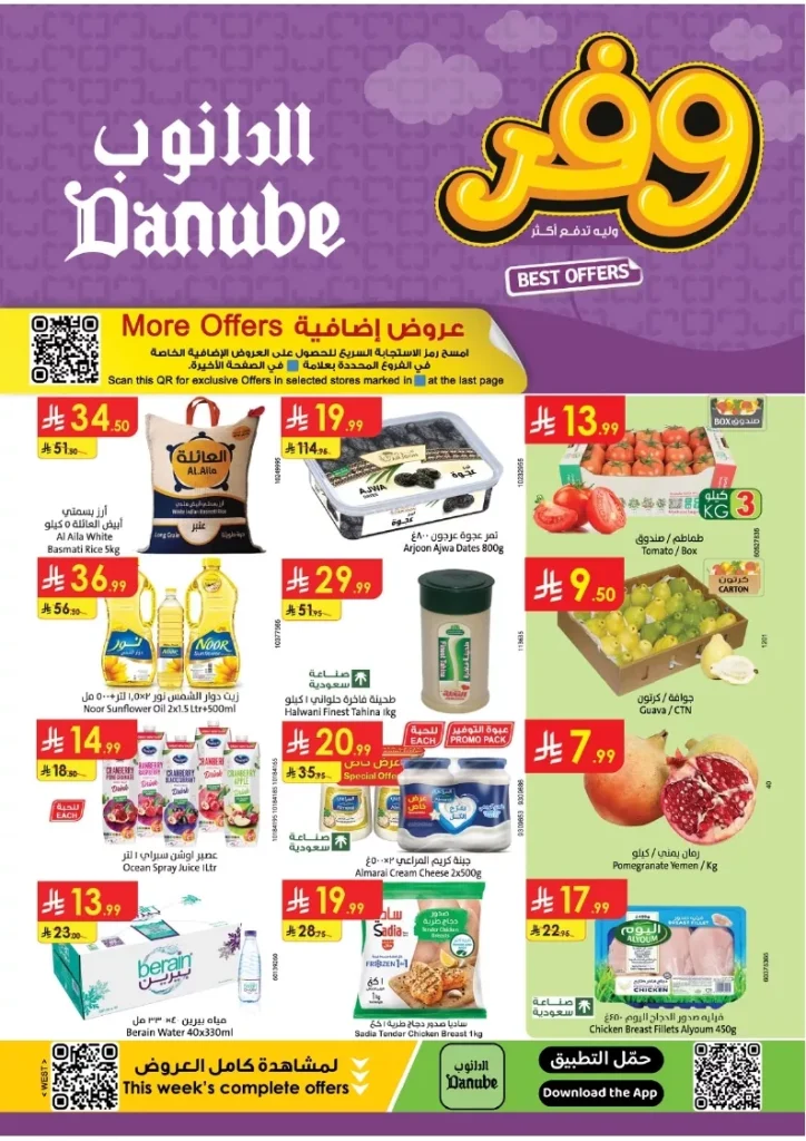 عروض الدانوب جدة الأسبوعية الأربعاء 12 نوفمبر 2025 تحتوي تخفيضات على الأجهزة المنزلية مثل المكانس اللاسلكية وأفران وأجهزة تحضير القهوة وأجهزة الخبز وأفران التحميص كما تضم منتجات غذائية مختلفة تشمل المعكرونات القصيرة والصلصات الأوروبية والفواكه المجففة والعسل الأبيض والجبن البلدي