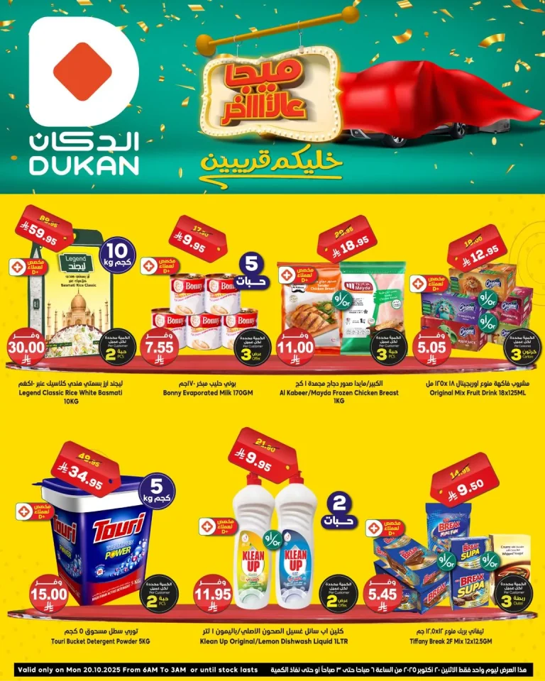عروض الدكان جدة الاثنين 20 اكتوبر 2025 تشمل تشكيلة من الأرز البسمتي الأبيض الفاخر ومجموعة الحليب المبخر والدجاج المجمد والمشروبات الفاكهية و تشمل أيضا مجموعة من المنتجات المجمدة والمشروبات والعصائر الفاخرة بالإضافة إلى المنظفات والمنتجات باسعار تنافسية مناسبة للجميع