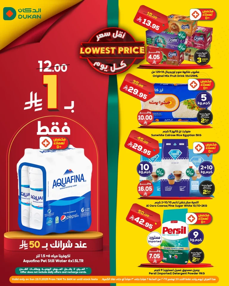 نقدم لكم اليوم عروض الدكان جدة الاحد 23-11-2025 و تحتوي علي افضل المنتجات الغذائية و الاستهلاكية لاي منزل من الارز و السكر و بتوفر كمان مياه اكوافينا و غيرها من المنتجات باسعار مناسبة للجميع في عرض حصري متاح اليوم فقط تابعونا علي موقعكم عروض توداي ليصلكم كل جديد .