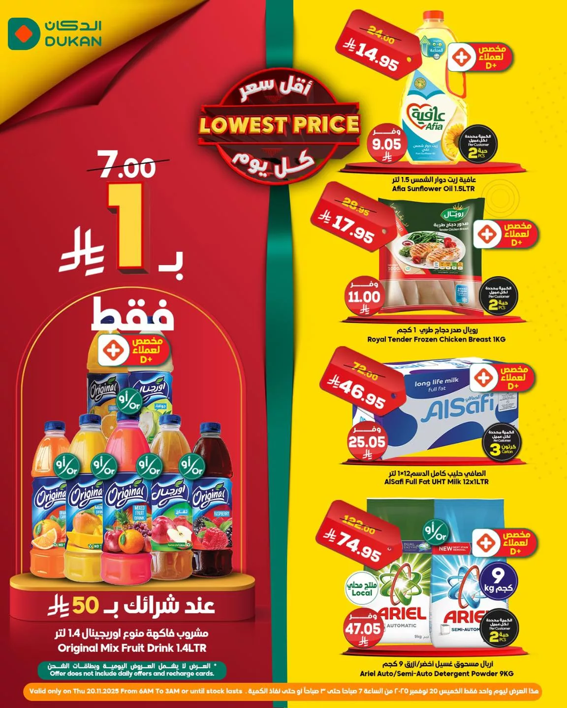 نقدم لكم اليوم احدث عروض الدكان جدة بتاريخ الخميس 20-11-2025 و تحتوي علي منتجات متنوعة تشمل عافية زيت دوار الشمس و رويال صدور دجاج طري و بتوفر كمان الصافي حليب كامل الدسم في عرض حصري متاح اليوم فقط و باسعار مناسبة للجميع فقط تابعونا ليصل اليكم كل جديد عن عروض السعودية .