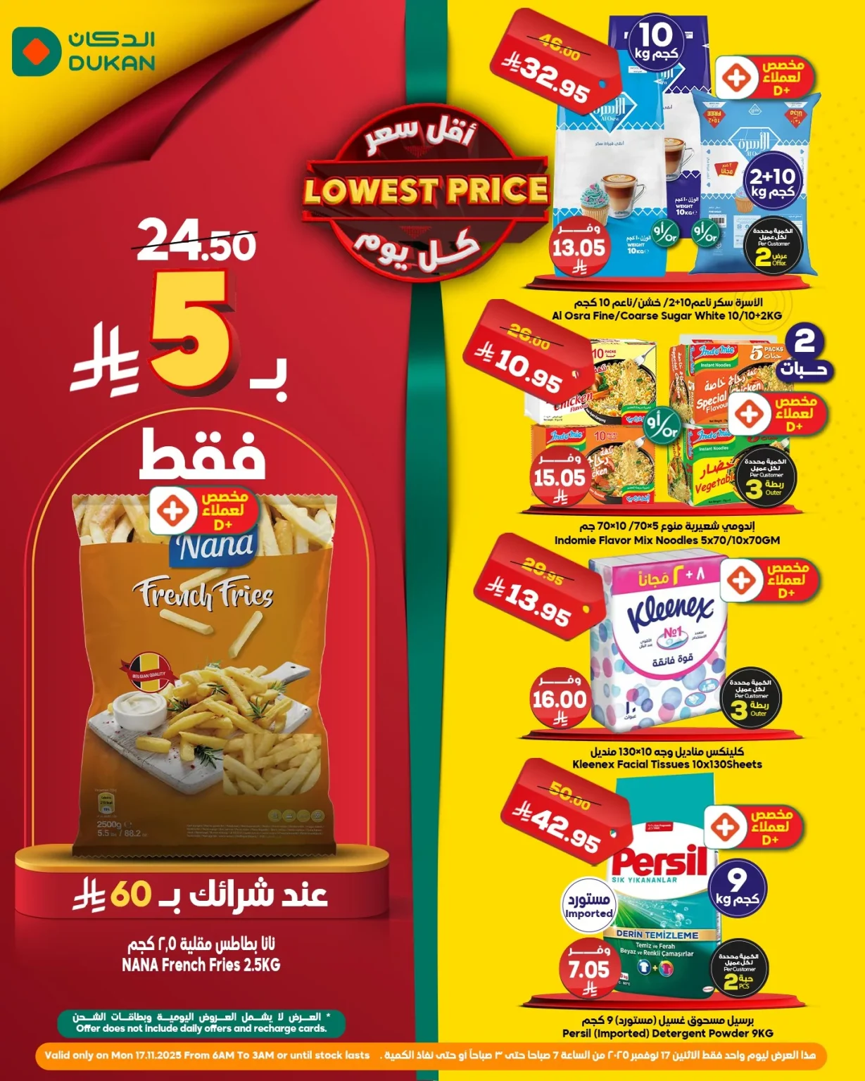 عروض الدكان جدة الاثنين 26 جماد الاول 1447هـ بتقدم ليكم احدث العروض علي منتجات غذائية متنوعة منها الاسرة سكر ناعم و اندومي شيعرية و بتوفر كمان اليوم ده برسيل مسحوق غسيل 9 كجم و غيرها من المنتجات في عرض حصري متاح اليوم فقط باقل الاسعار ابقو معنا علي موقعكم عروض توداي ليصلكم كل جديد