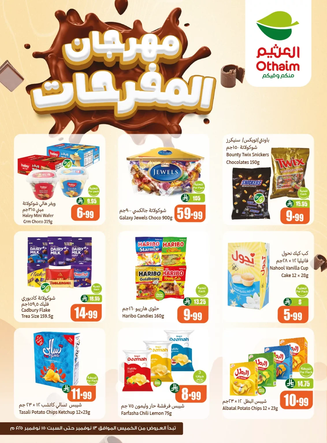 عروض العثيم مهرجان المفرحات من 13 حتى 15 نوفمبر 2025 اللمة ما تكمل بدون سناكات استفيدوا من العروض الخاصة لمدة 3 ايام فقط
