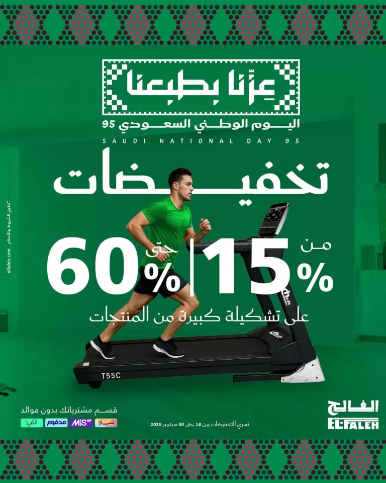 عروض الفالح اليوم الاخير تخفيضات كبرى من 15% حتى 60% الحق عروض اليوم الوطني 95 بأخر يوم