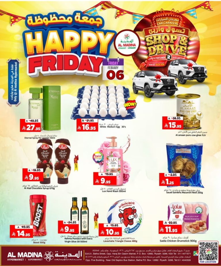 عروض المدينة هايبر ماركت الويكند 6 فبراير 2026 ليومين فقط عروض الجمعة المحظوظه في جميع الفروع ضمن المملكة ليومين فقط 6 و 7 فبراير 2026 على المواد الغذائية و الخضروات و العديد من المنتجات المميزه بأفضل الاسعار