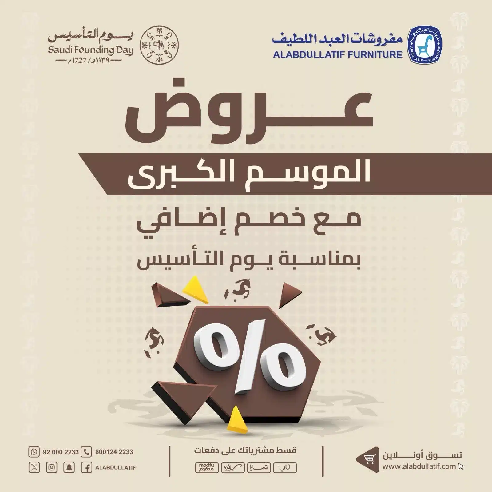 عروض الموسم الكبرى من مفروشات العبداللطيف مع خصم أضافي في يوم التأسيس