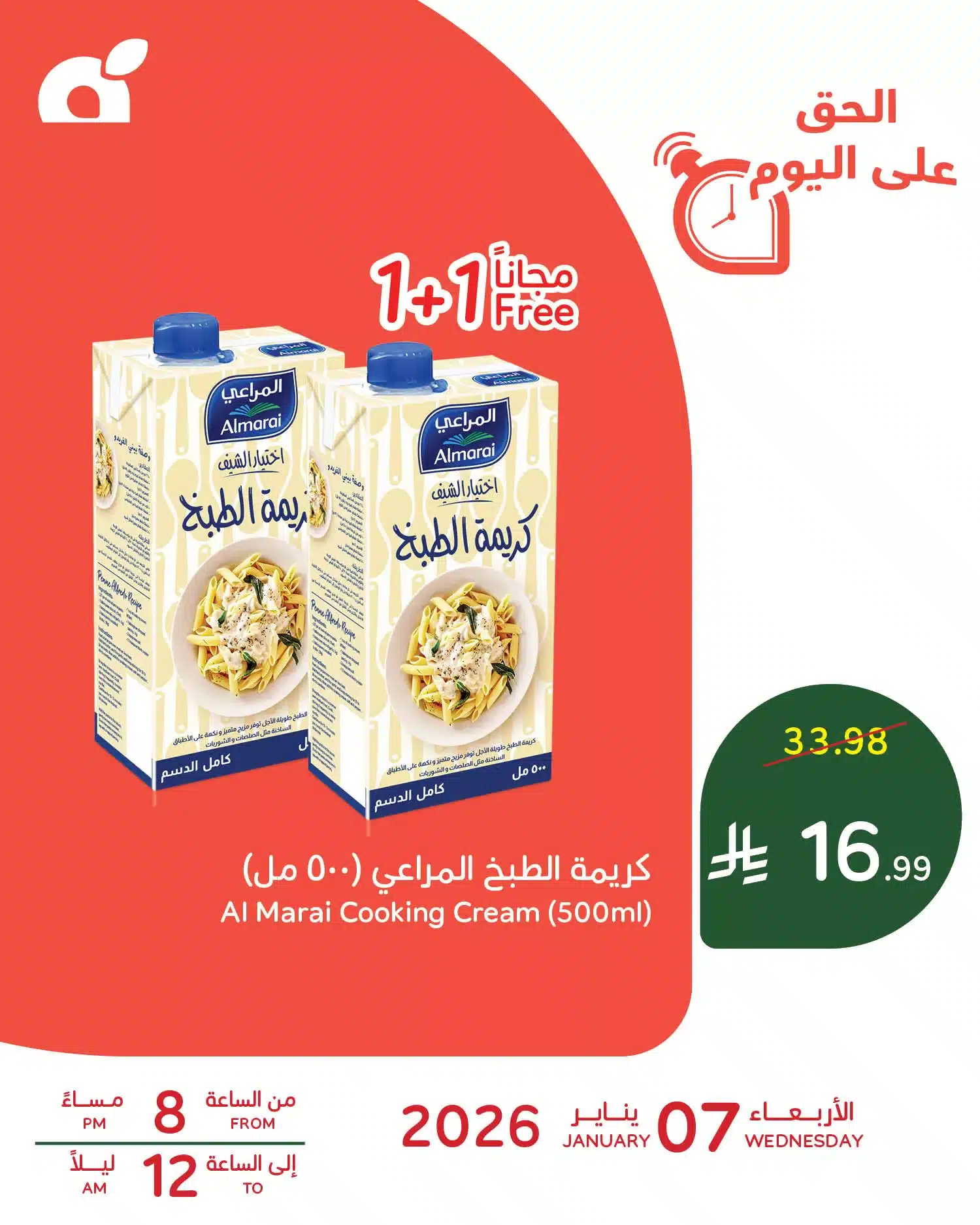 عروض بنده السعودية بتقدم ليكم الاربعاء 18 رجب 1447هـ الموافق 7 يناير 2026 احدث العروض الرمضانية اليومية و بتشمل كريمة الطبخ المراعي استفد الان من عرض 1+1 مجانا متاح لساعات محدودة فقط كما يوفر موقعنا مجلة عروض بنده الاسبوعية لشهر رمضان الكريم و تحتوي علي منتجات غذائية و الكترونية و باسعار منافسة .