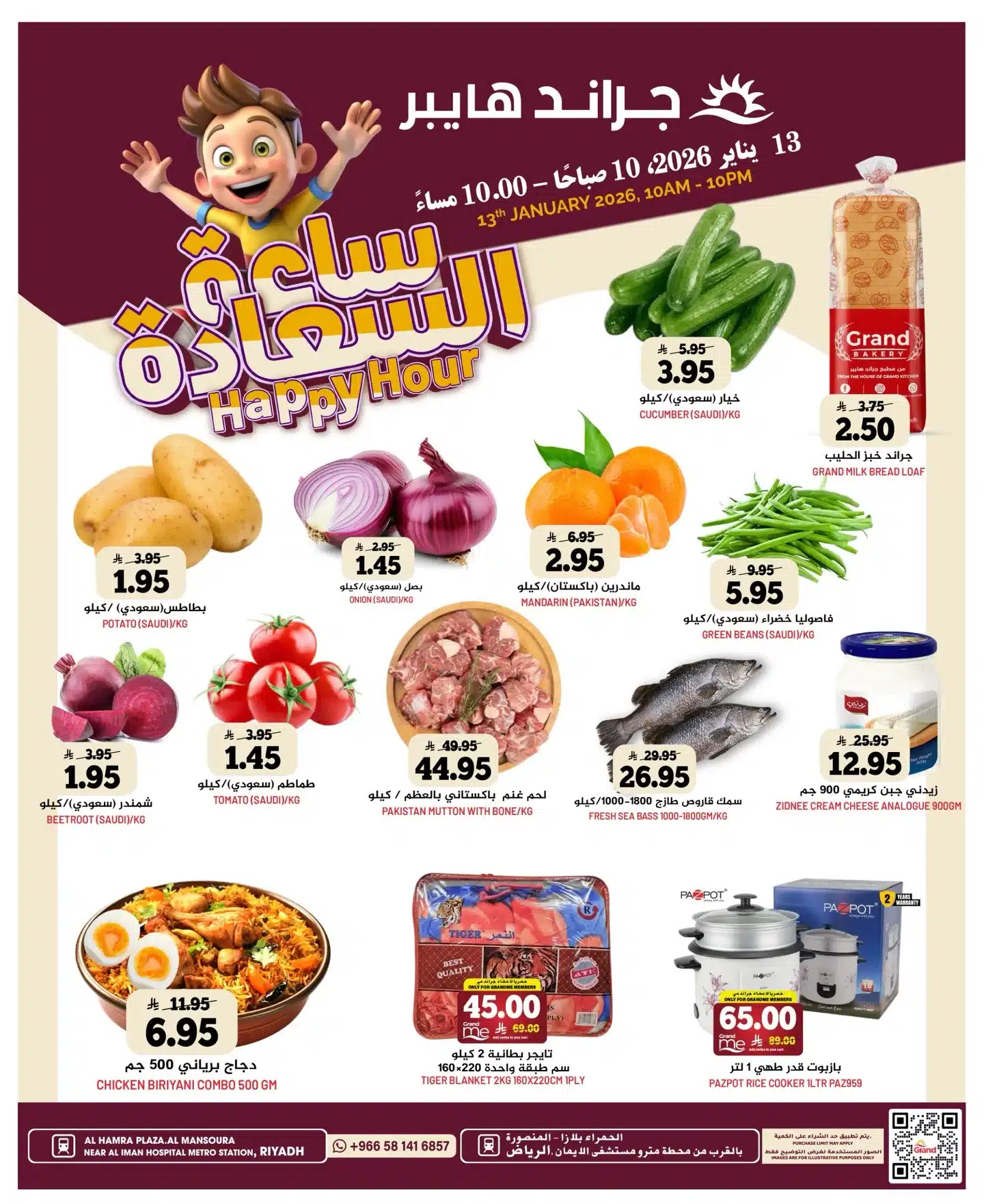 عروض جراند هايبر الرياض الطازج الثلاثاء 13 يناير 2026 اليوم فقط