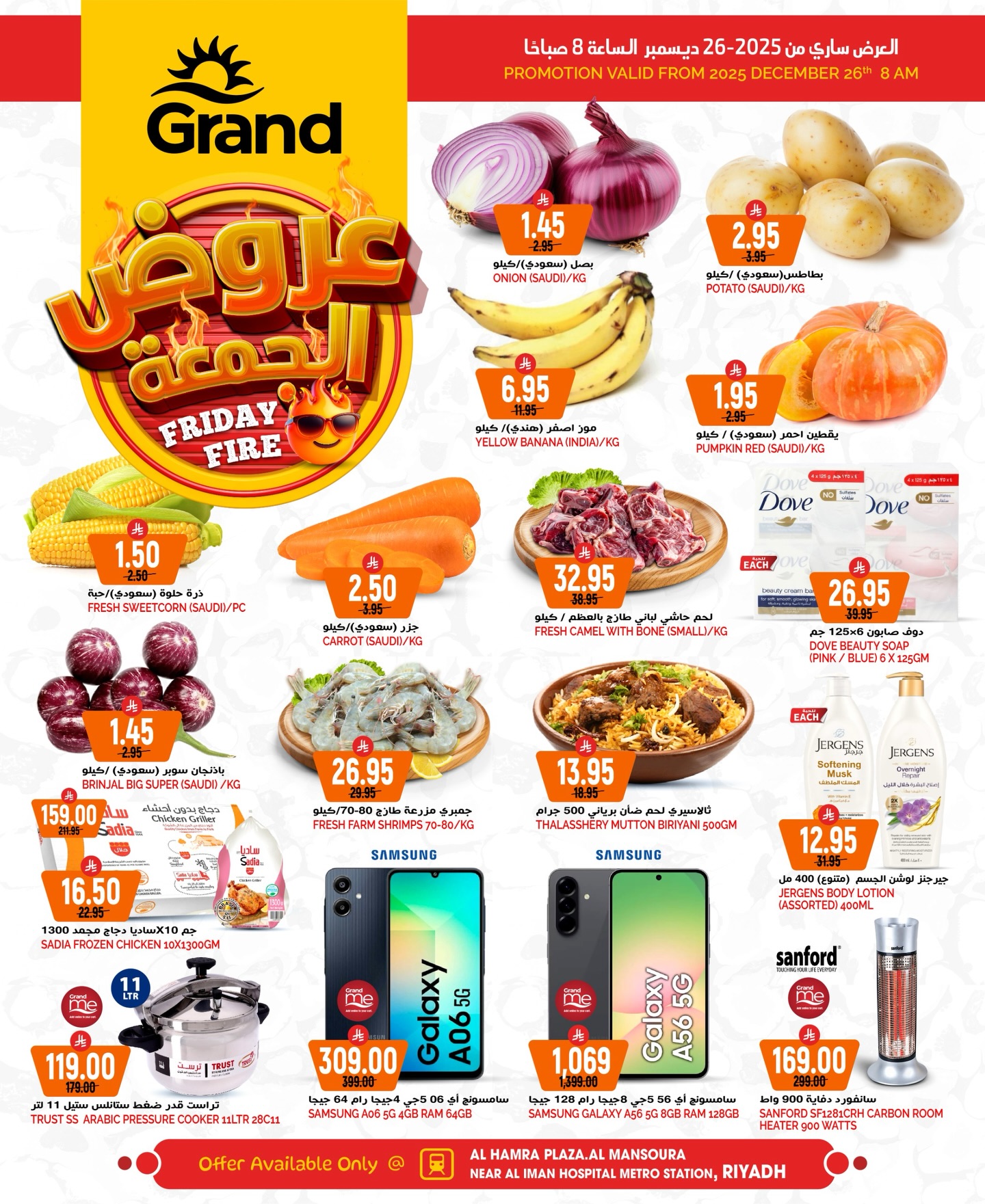 عروض جراند هايبر الرياض الطازج الجمعة 26-12-2025 و تحتوي علي منتجات متنوعة منها بطاطس سعودي و موز اصفر و لحم حاشي طازج بالعظم و ايضا بتوفر جزر سعودي و ذرة حلوة و جمبري مزرعة طازج و غيرهم من المنتجات في عرض حصري متاح اليوم فقط من الساعة 8 صباحا تابعونا ليصلكم كل جديد عن عروض السعودية