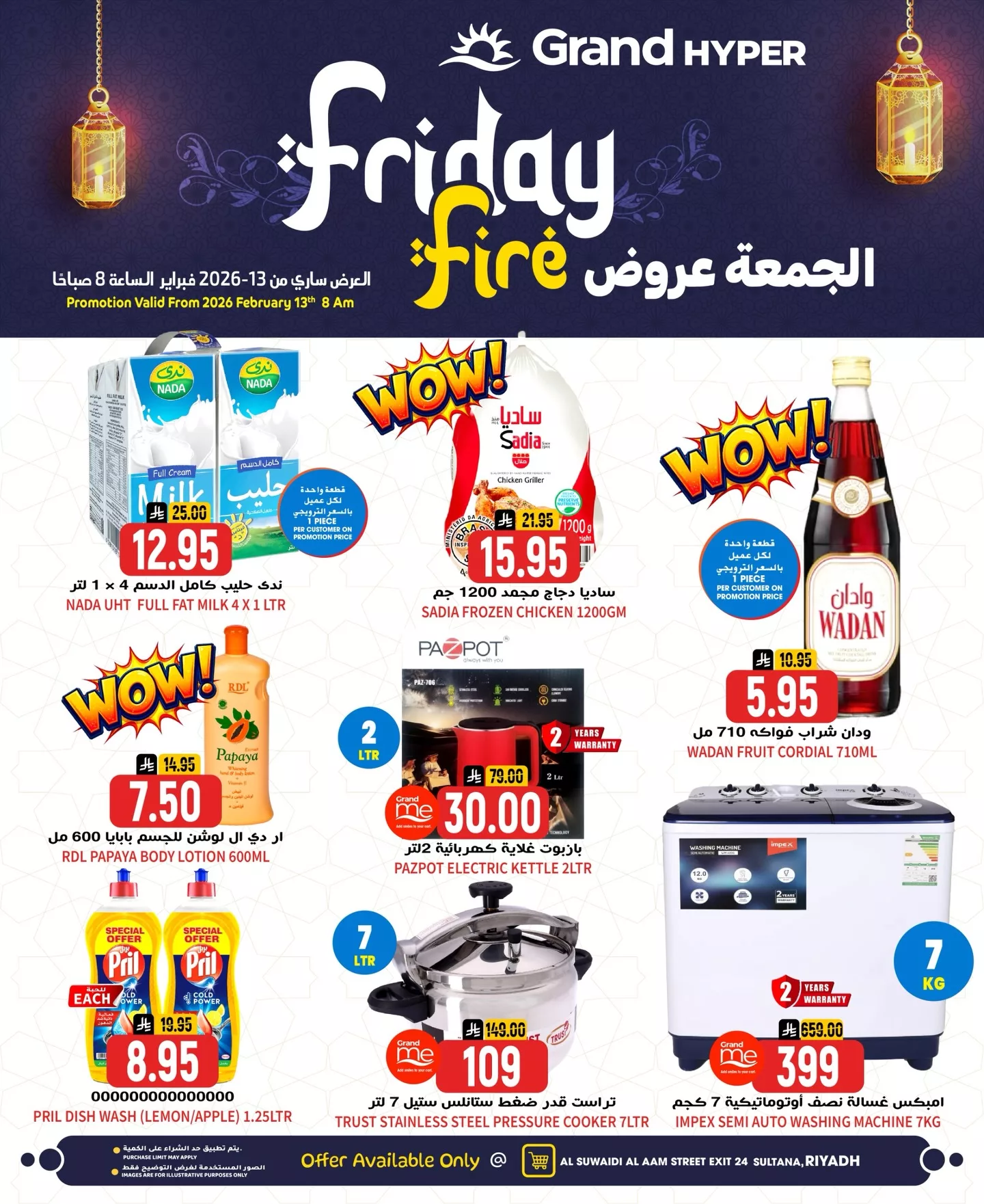 عروض جراند هايبر السعودية ليوم الجمعة 13 فبراير 2026 تخفيضات الويكند على مقاضي المنزل الاساسيه و المنتجات الطازجه بأفضل الاسعار لا تفوتوا التوفير العروض تبدأ من الساعه 8 صباحا يوم الجمعة في الرياض استمتعوا معنا بعطلة نهاية اسبوع ملئيه بالتوفير
