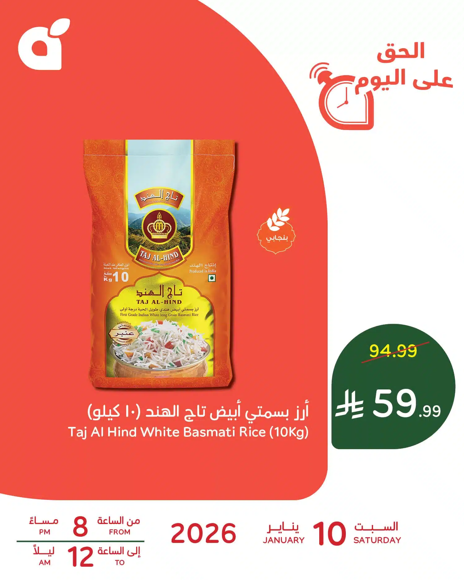عروض رمضان اليومية من بنده علي ارز بسمتي أبيض تاج الهند السبت 10-1-2026