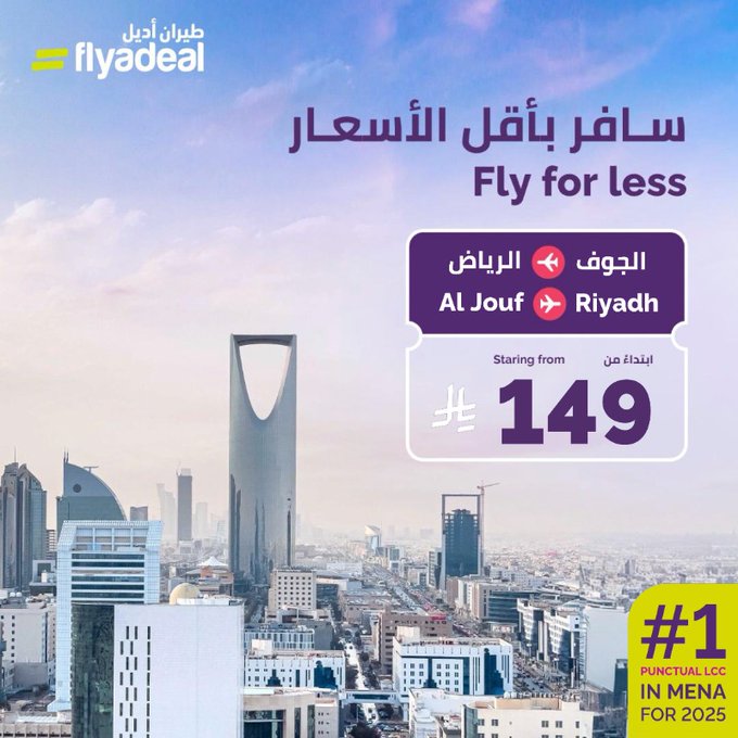 HAn5vqFakAAA4Ir - عروض طيران اديل من الجوف إلى الرياض 8 فبراير 2026 بأفضل الاسعار
