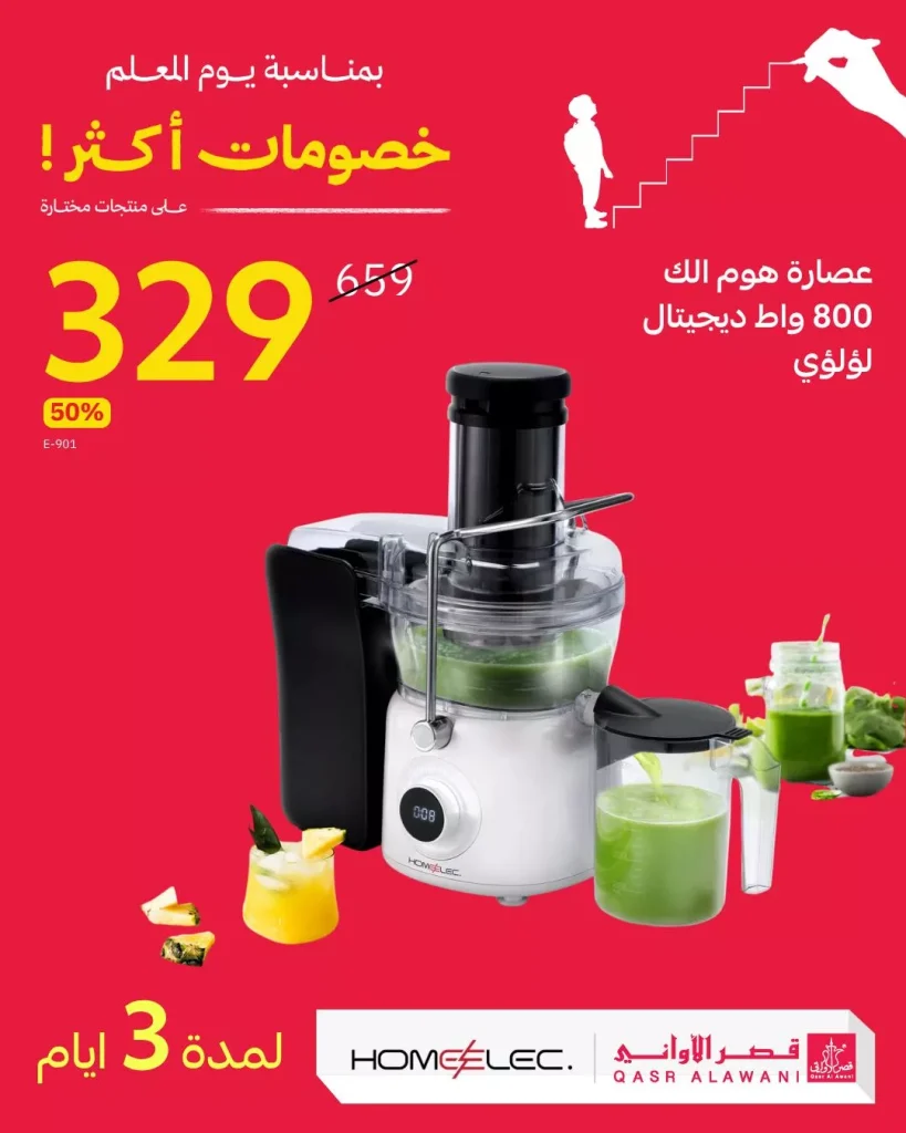 عروض قصر الأواني بمناسبة يوم المعلم تميزت بتقديم مجموعة مختارة من أجهزة المنزل العصرية منها عصارة هوم الك الرقمية وتوفر ايضا ترمس جوانا السماوي الذي يحافظ على حرارة المشروبات لفترات طويلة و كوب حافظ للحرارة المصمم بشكل أنيق باقل الاسعار تابعونا ليصل اليكم كل جديد عن عروض السعودية