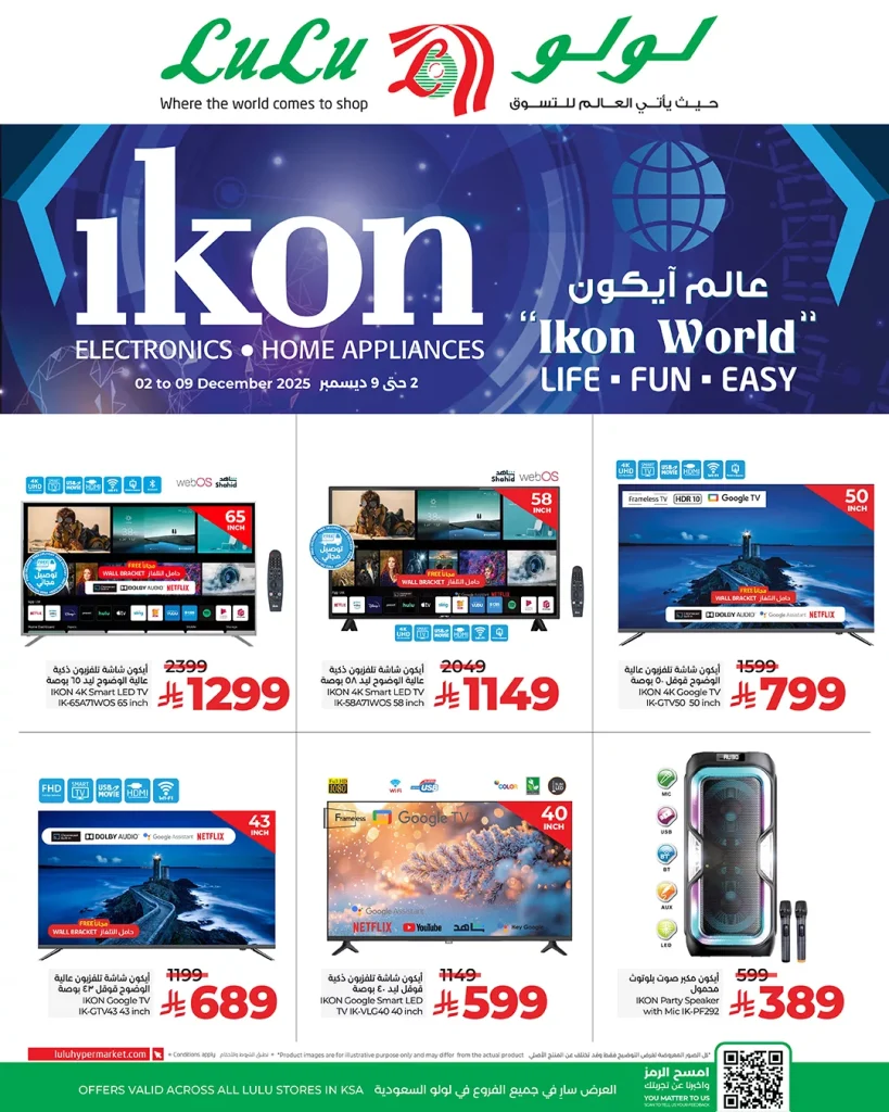 عروض لولو السعودية عالم آيكون من 2 إلى 9 ديسمبر 2025 اكتشف عروض رهيبة على الإلكترونيات ، والأجهزة الذكية، وأجهزة البيت في فروع لولو حول المملكة افضل المنتجات التقنية و السعار المنافسة في مكان واحد استفيدوا من اقوى التخفيضات المميزه