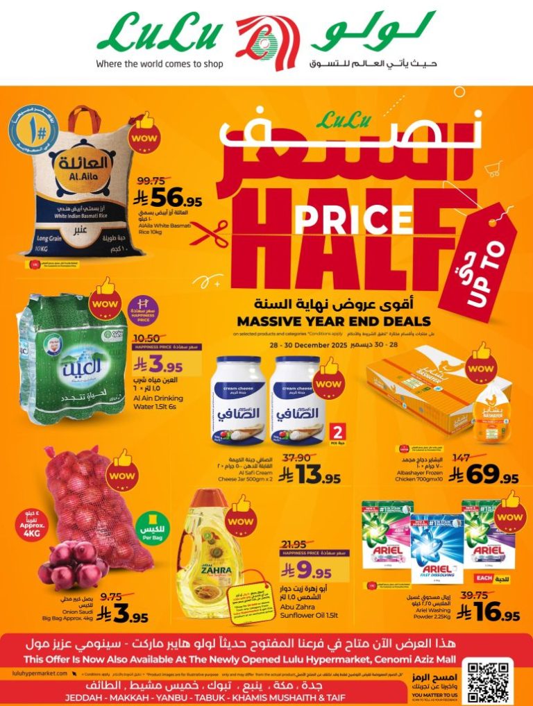عروض لولو جدة الطازج بتاريخ الاحد 28-12-2025 تقدم لكم أنواع الشاي والحليب البودرة ومعجون الطماطم والسكر الناعم والأرز البسمتي وزيت دوار الشمس مع الأسماك المتنوعة منها الحبار والماكريل والسمك المفلطح والسلمون والجمبري إضافة إلى الأجبان والحلويات الشرقية والكعكات الجاهزة والمكسرات والدواجن والفواكه والخضروات