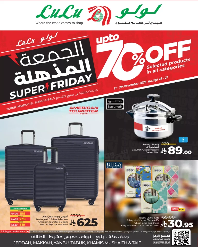 عروض لولو جدة الاسبوعية مستمرة حتي السبت 29 نوفمبر 2025 و تشمل علي أطقم طهي متعددة القطع من ماركات معروفة وأواني ضغط بالإضافة إلى أطقم أواني وأكواب زجاجية وأدوات مطبخ متنوعة مثل لوح التقطيع ومجموعة السكاكين و غيرها من المنتجات و باقل الاسعار في تخفيضات الجمعة المذهلة .