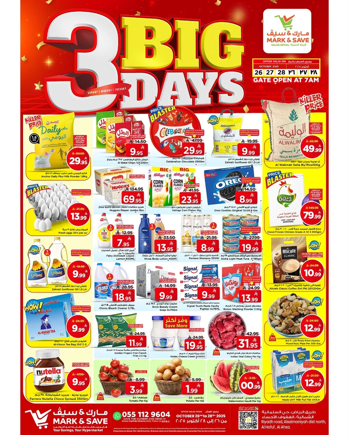 عروض مارك اند سيف الأحساء الأحد 26 أكتوبر 2025 تتألق بتشكيلة واسعة من المنتجات الغذائية و الحلويات والمعجنات والعسل والشوكولاتة والمشروبات الساخنة والبسكويت والعصائر بالإضافة إلى المربيات وزبدة الشوكولاتة وأنواع القهوة مثل الأرز والزيت والدقيق والسكر والشاي وأنواع الحبوب باقل الاسعار .