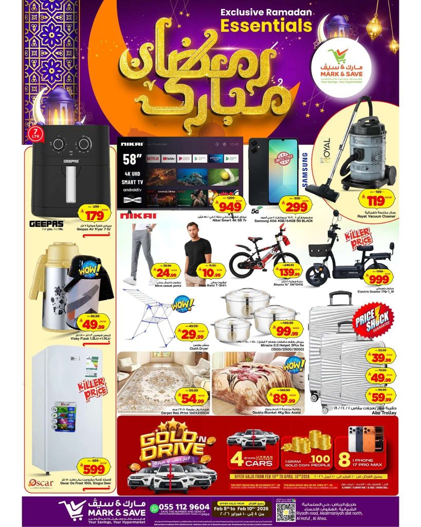 عروض مارك اند سيف الاحساء الاحد 20-8-1447هـ – 8 فبراير 2026 و تحتوي علي الأرز بالإضافة إلى منتجات التسلية والحلويات كما توفر العروض مستلزمات المطبخ والطهي