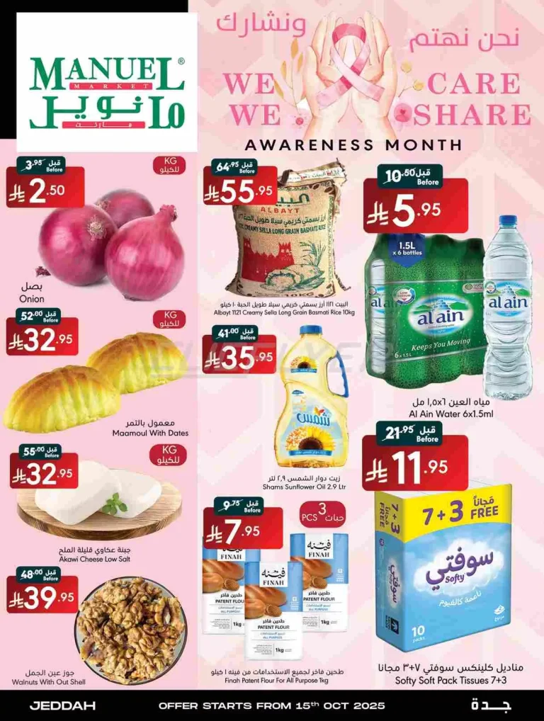 عروض مانويل جدة الأسبوعية الخميس 16-10-2025 تقدم خصومات مميزة على المخبوزات والمعجنات الشرقية والعصائر الطازجة والمشروبات الغازية والحلويات الغربية والمكسرات بأنواعها بالإضافة إلى القهوة الفاخرة والعسل الطبيعي كما تتوفر تخفيضات على الأجهزة المنزلية الصغيرة مثل أجهزة القهوة وأفران البيتزا وأجهزة تحضير الكريب