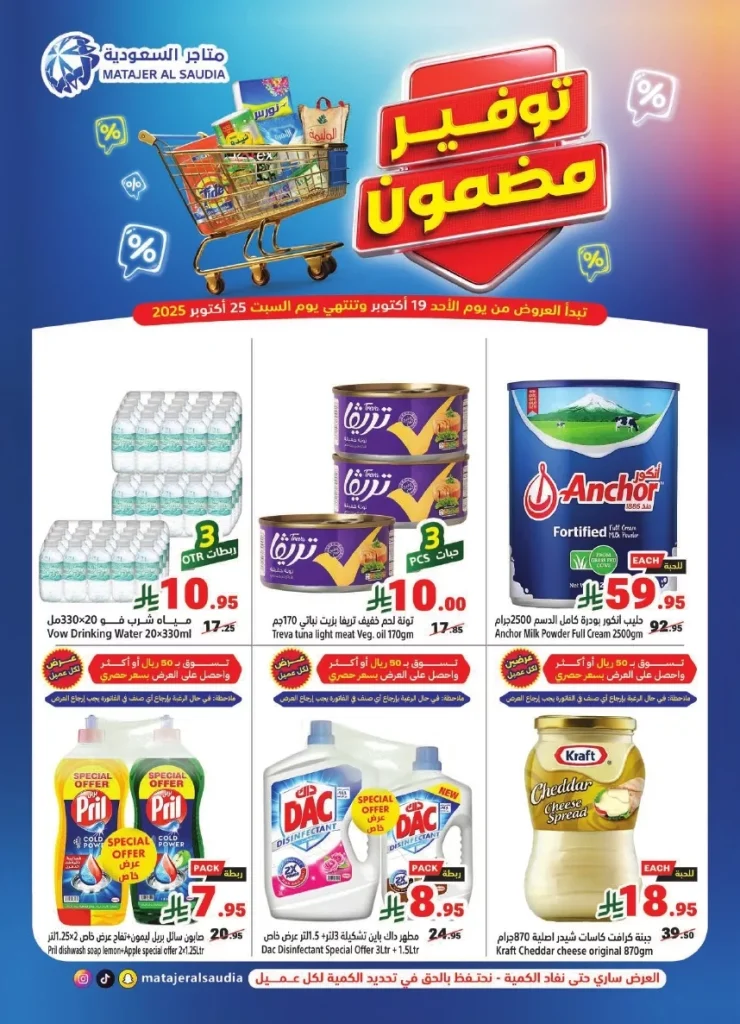 عروض متاجر السعودية الأحد 19 أكتوبر 2025 تقدم اللحوم الطازجة والدواجن والبهارات المتنوعة بالإضافة إلى تشكيلة واسعة المكسرات والتوابل الأساسية للطهي و المواد الغذائية الأساسية مثل الأرز والدقيق والمعكرونة والمعلبات والأجبان والمخبوزات باقل الاسعار المناسبة للجميع