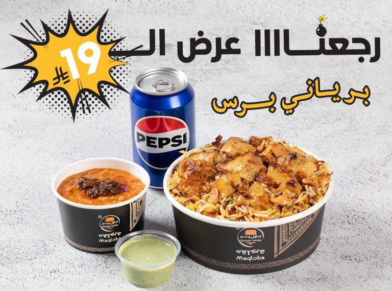 عروض مطعم مقلوبة على برياني برس بـ 19 ريال فقط سعر يبرد القلب وطعم ما يحتاج نقاش اطلب واستمتع بأفضل الوجبات الشهية معنا