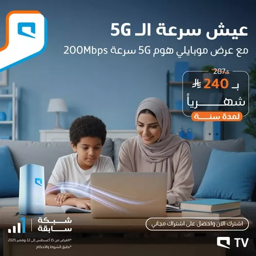 • عرض موبايلي هوم 5G لمدة سنة بسرعة 200 ميجا