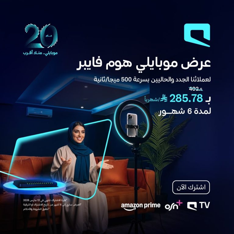 عروض موبايلي على باقة هوم فايبر بأفضل الاسعار 22 يناير 2026 لمدة 6 شهور مع اشتراكات مجانية في OSN+ | Amazon Prime | Mobily TV للعملاء الجدد وللعملاء الحاليين عند الترقية إلى سرعة 500 ميجا اشترك الآن بـ 285.78 ريال شهريًا عبر موقع موبايلي لا تفوتوا الفرصة