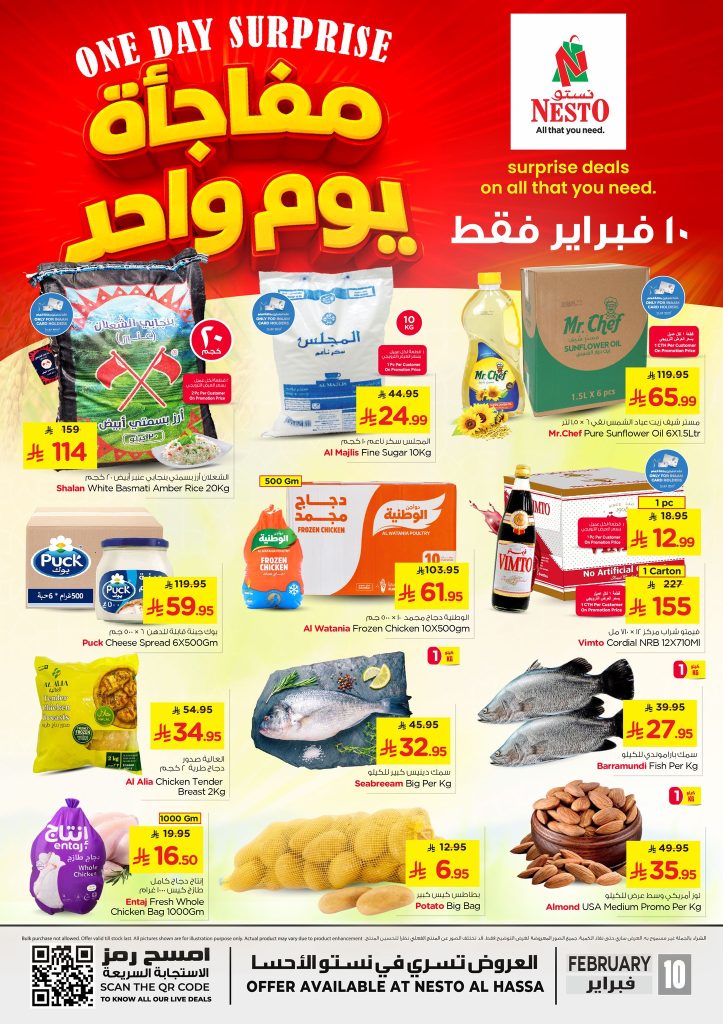 هذه العروض تسري في اسواق نستو الاحساء فقط ليوم واحد الثلاثاء 10 فبراير 2026 فقط الحقوا العروض