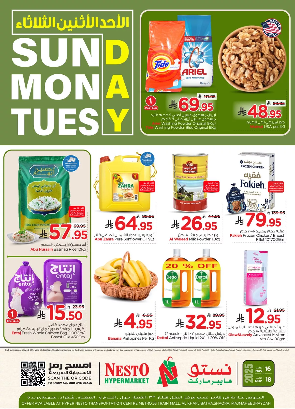 عروض نستو الرياض الاحد 15 نوفمبر 2025 بتقدم ليكم مجموعة من المنتجات الطازجة مثل الدواجن المجمدة والخضروات إضافة إلى تشكيلة من منتجات الألبان والجبن والزبدة مع عروض للمنتجات المنزلية كالمعقمات والمنظفات في عرض حصري متاح لمدة 3 ايام فقط ابقوا معنا ليصلكم كل جديد عن عروض السعودية .