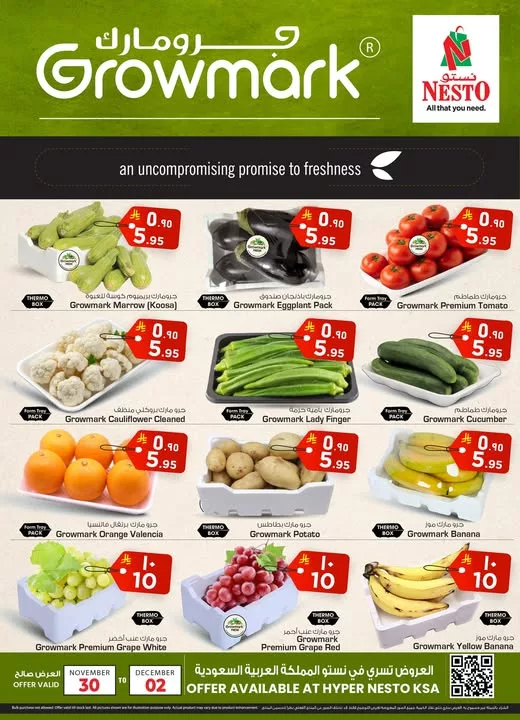 عروض نستو السعودية الطازجة من 30 نوفمبر إلى 2 ديسمبر 2025 افضل المنتجات الطازجه و المختارة بعناية بأفضل الاسعار و هذه العروض متوفره في جميع فروع نستو في المملكة لا تفوتوا الافضل و استفيدوا من التخفيضات ضمن عروض Growmark من نستو