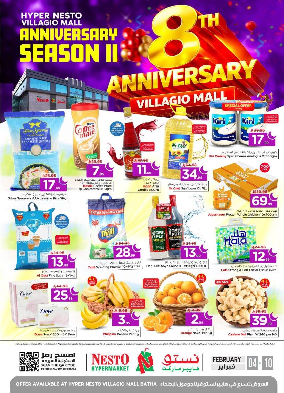 نقدم لكم عروض نستو فيلاجيو مول البطحاء الاربعاء 4 فبراير 2026 الموافق 16 شعبان 1447هـ و تحتوي علي الفاصوليا الخضراء والتفاح واليوسفي واللفت والكوسا والقرع الأخضر والتمر بأنواعه إلى جانب الكنافة بالقشطة وخبز الحليب ومعجنات البتي فور والأسماك الطازجة كما تشمل المانجو والكيوي والبرتقال والجوافة والبروكلي والشمام