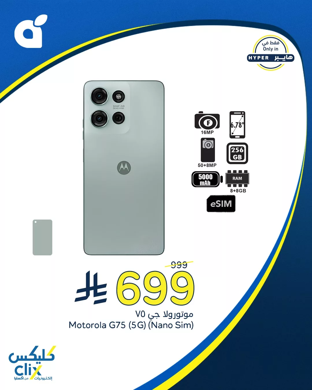 - موتورولا G75 (5G) – 699 ريال (بدلاً من 999 ريال)