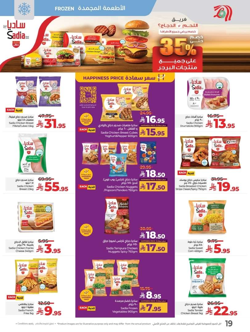 عروض لولو السعودية تشمل أيضا تشكيلة متنوعة من المنتجات المجمدة مثل صدور وأجزاء الدجاج من ساديا والدجاج الطازج من الحديقة بالإضافة إلى خضروات مجمدة وبطاطس مقلية وكلها تناسب تجهيز الوجبات السريعة والمضمونة الجودة كما نجد تشكيلة مشروبات وعصائر من نادك وفلوريدا ناتشورال مع زبادي وقشطة