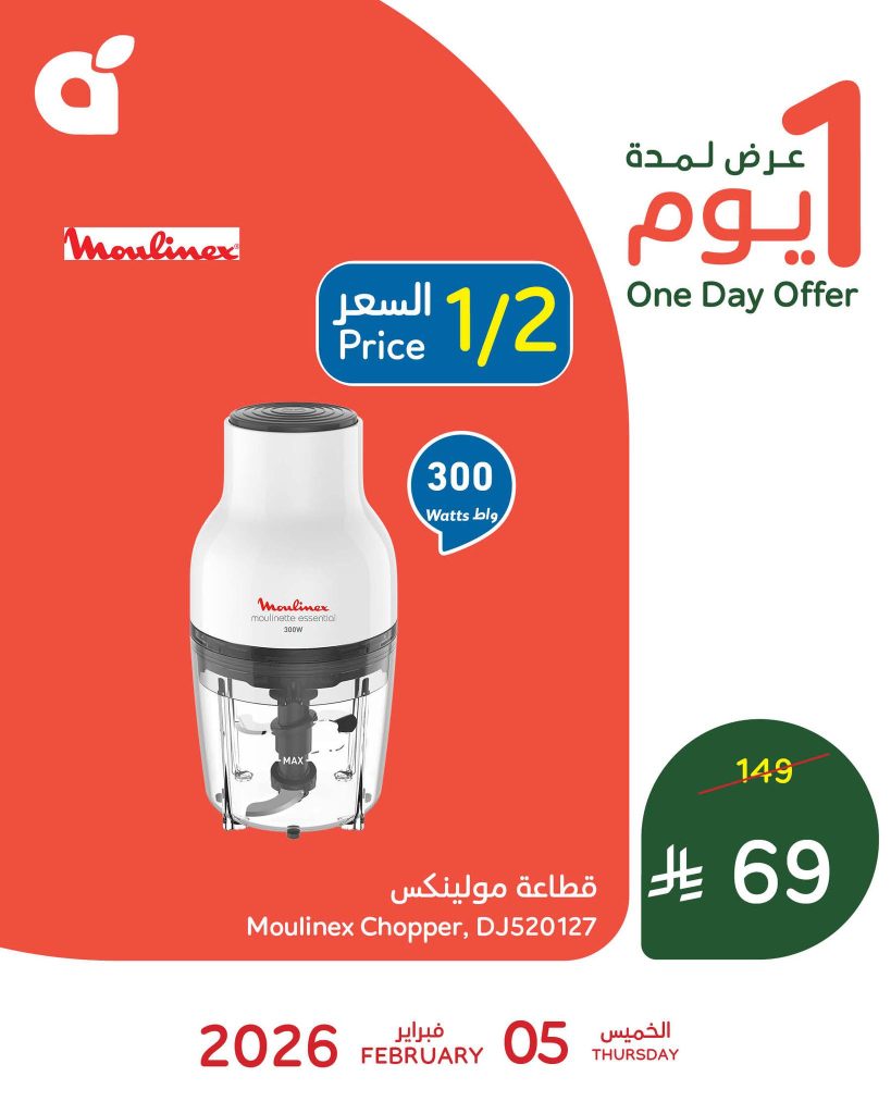 عروض بنده الخميس 5 فبراير 2026 الموافق 17 شعبان 1447هـ و تحتوي علي افضل عروض اجهزة المطبخ اليوم و هي قطاعة مولينكس و توفره بنده السعودية بأكثر من نصف السعر و باسعار مميزة لمدة يوم واحد فقط تابعونا لمعرفة كل جديد عن عروض السعودية علي موقع عروض توداي