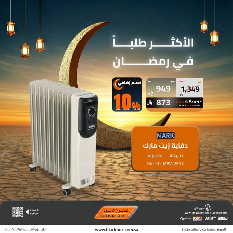عروض الصندوق الاسود بتقدم ليكم اقوي التخفيضات بمناسبة شهر رمضان الكريم منها شاشات التلفزيون و القلايات الهوائية و بتوفر ايضا الغسالات و الثلاجات و غيرها من الاجهزة باقل الاسعار المناسبة للجميع في عرض حصري مع عرض بلاك بلس تابعونا لمعرفة كل جديد عن عروض السعودية علي موقعكم عروض توداي .