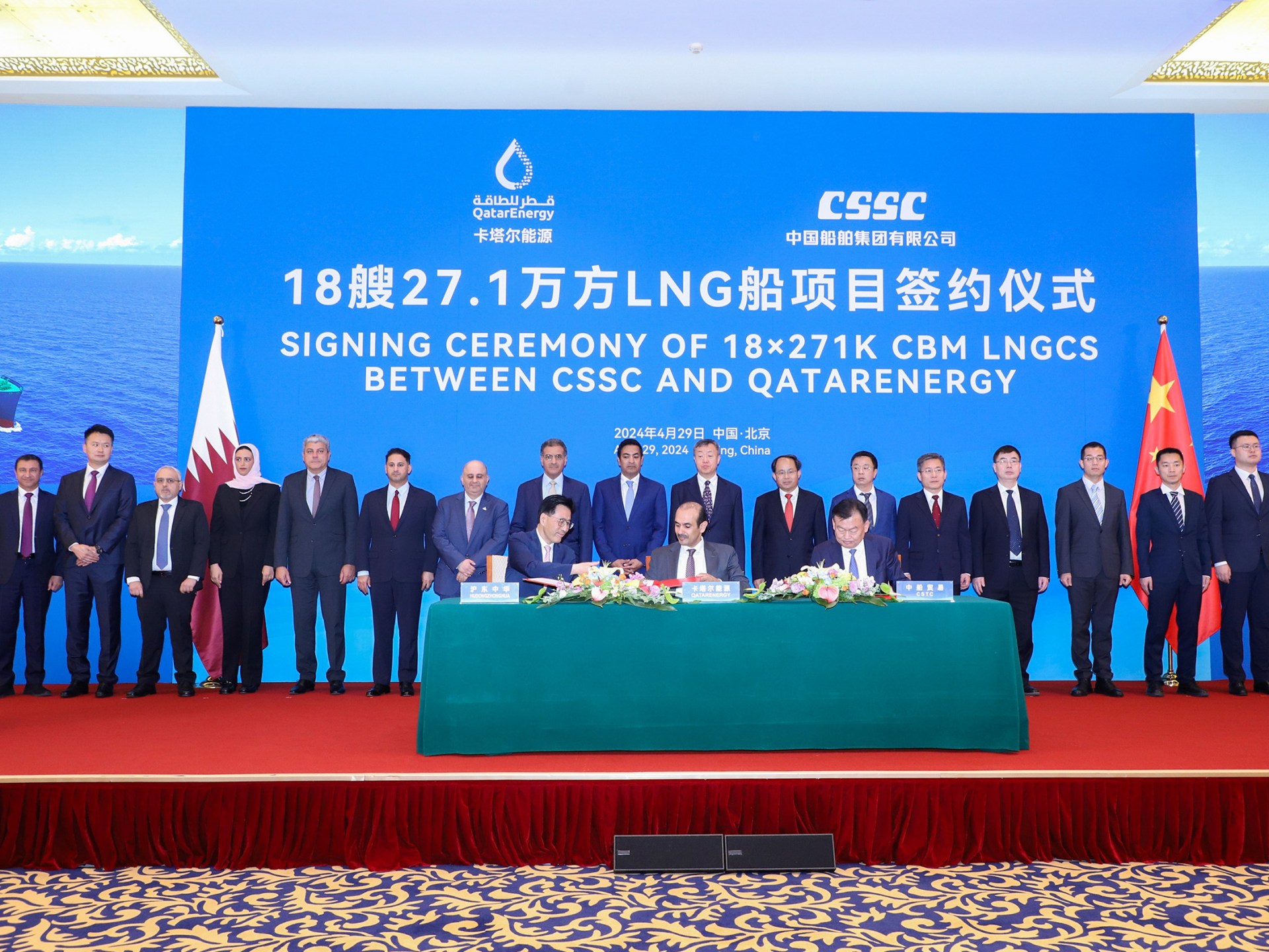 وقّعت قطر للطاقة عقدا لبناء 18 ناقلة غاز طبيعي مسال متطورة من فئة “كيو سي-ماكس” مع مؤسسة الصين الحكومية لبناء السفن، وذلك في إضافة مهمة لبرنامجها التاريخي لتوسيع أسطولها من ناقلات الغاز المسال.